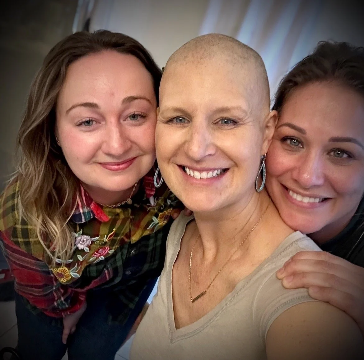 Forty-five minutes later, the three of us looked at each other in the mirror, my bald self sandwiched in between the love of two women who walked with me through the process. It was a beautiful sight to behold.